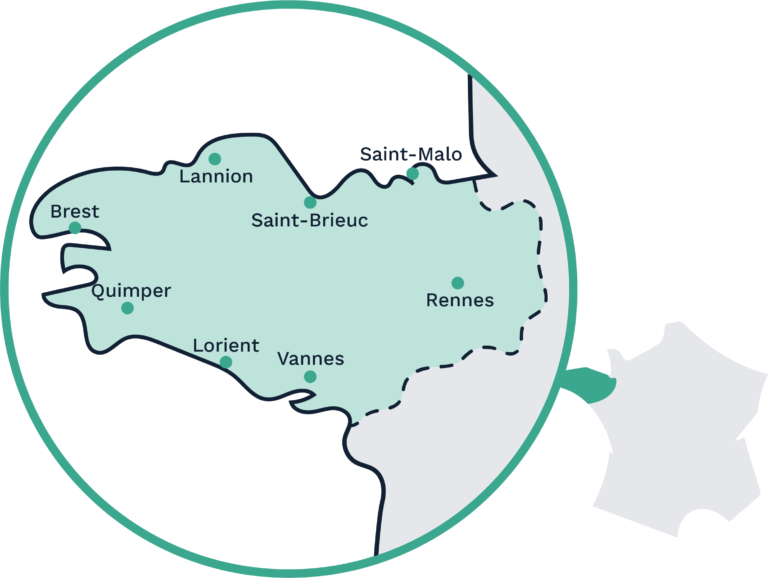 Notre territoire d’intervention est bien défini de Rennes, Saint-Malo, Saint-Brieuc, Lannion, Brest, Quimper, Lorient à Vannes, ce qui vous assure